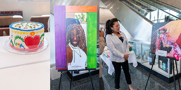 (L-R) Art pieces by Marcy Suarez, Daniel Martinez, and Norma Fields.