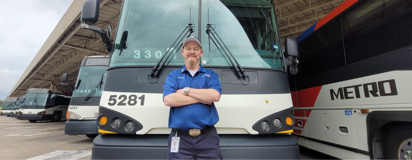 Before joining METRO four and a half years ago, the Spring native drove box trucks delivering copy machines to businesses throughout the South. Williams said he enjoyed the work but needed a more stable career after being laid off. His stepdaughter, Demetra, a special investigator for the Houston Police Department, suggested a move to public service.